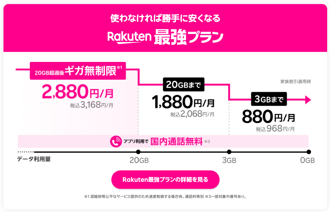 👉 楽天モバイルは